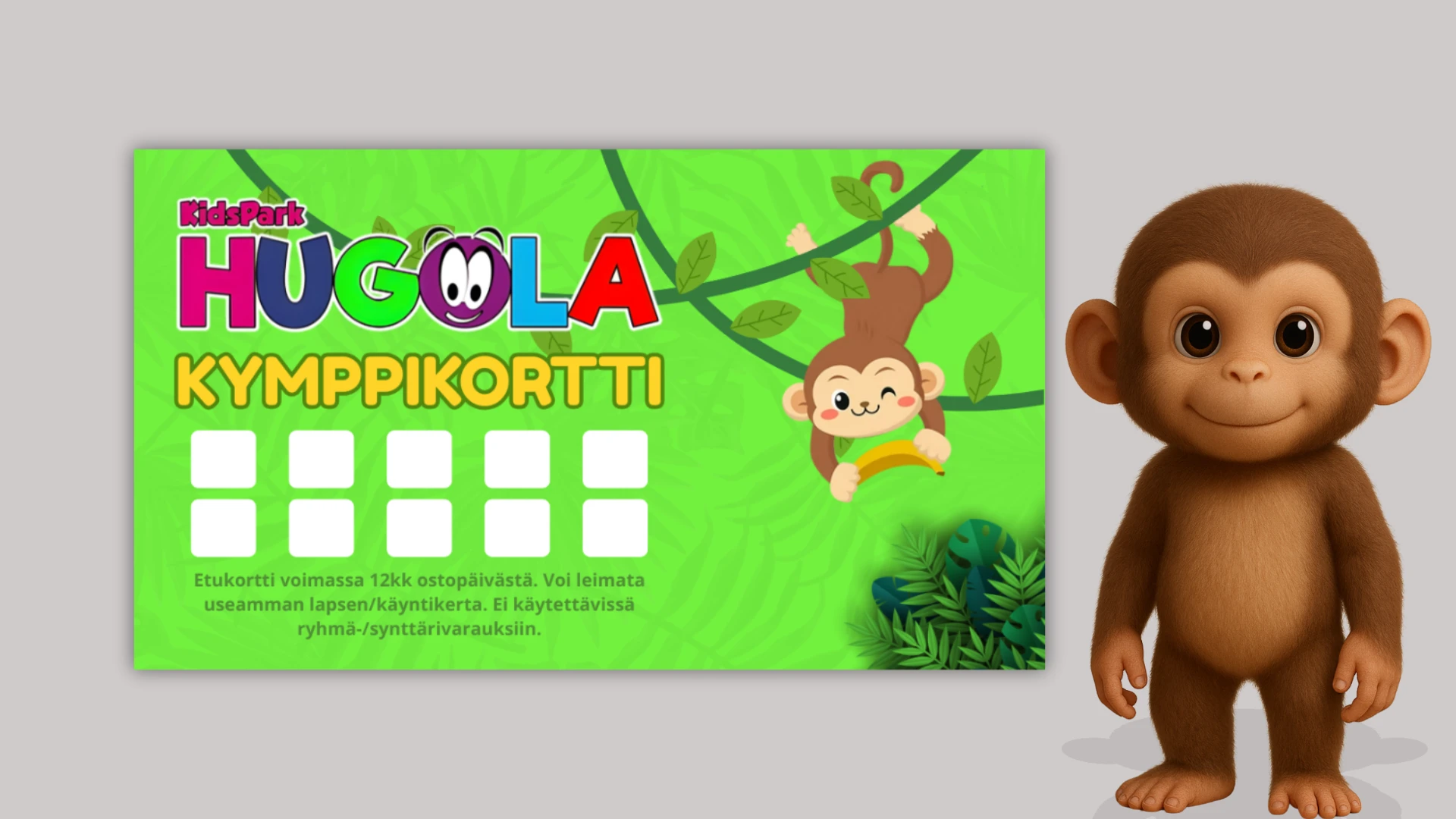 Säästä ja leiki enemmän Hugolan kymppikortilla! Saat 10 käyntikertaa edullisemmin, ja korttia voi käyttää useampi lapsi samalla kertaa – täydellinen vaihtoehto aktiivisille perheille.
